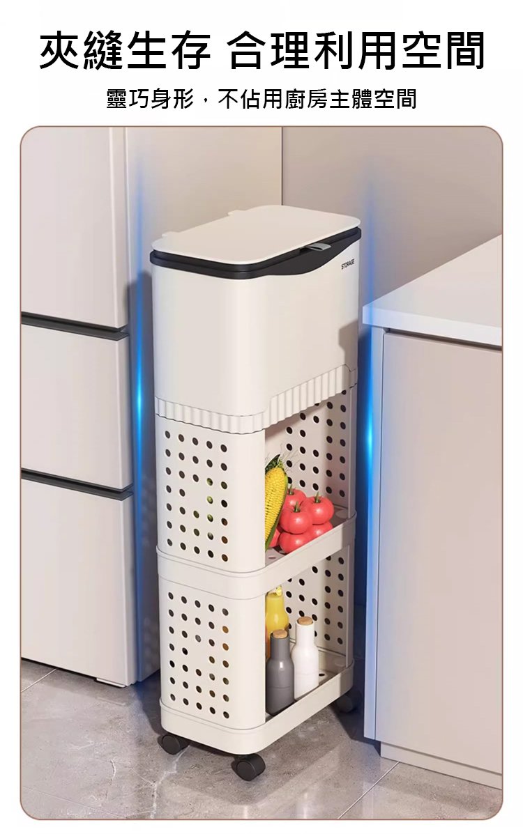 4分鐘前【不彎腰】家用可移動多功能置物垃圾桶 - 【超殺*贈20垃圾袋】1入組$279